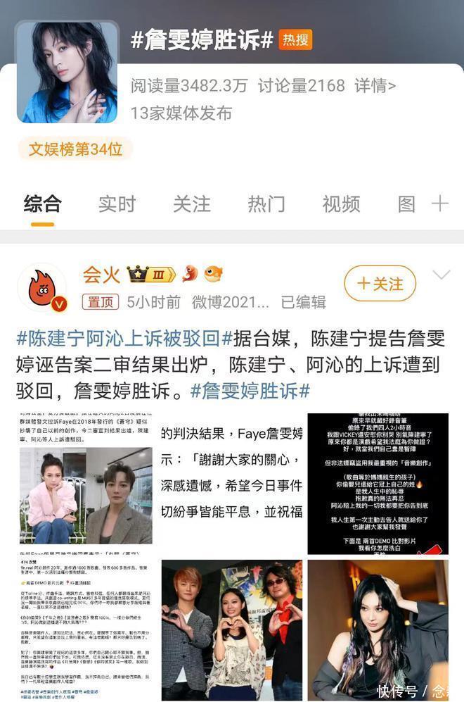 6月13日,音乐圈内的一场讼事终于尘埃落定。陈建宁提告詹雯婷曲解案二审甩手公布,陈建宁与阿沁的上诉被法院驳回,詹雯婷在这场纷争中胜诉。这一甩手,不仅为这场旷日握久的争端画上了句号,也让无边关注此事的乐迷们松了邻接。