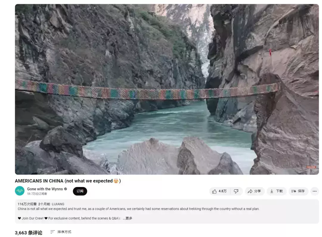 再比如底下这个好意思国博主,其拍的这个对于中国的视频浏览量有116万次,而她也有接近60万订阅者。