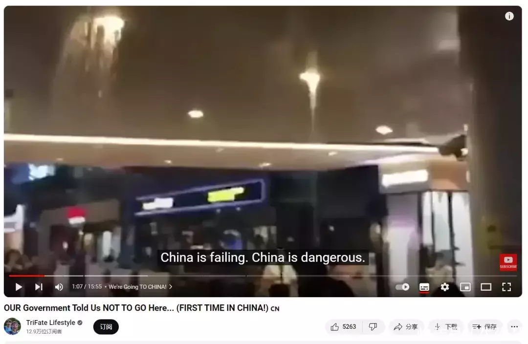 我其实挺奇怪他们为啥会这样说,来中国有啥好垂危以至发怵的?其后看到他们我方在视频内部诠释注解了原因,