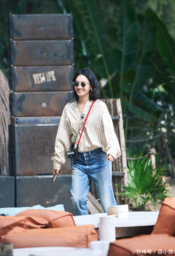 条纹上衣之是以经典,主要已经因为可穿性相比强,朱丹身上的这件基础款条纹衫,配色是它的点睛之笔。材质是棉感混纺,干爽透气,版型是落肩宽松贪图,穿上是很安静日常的一件。